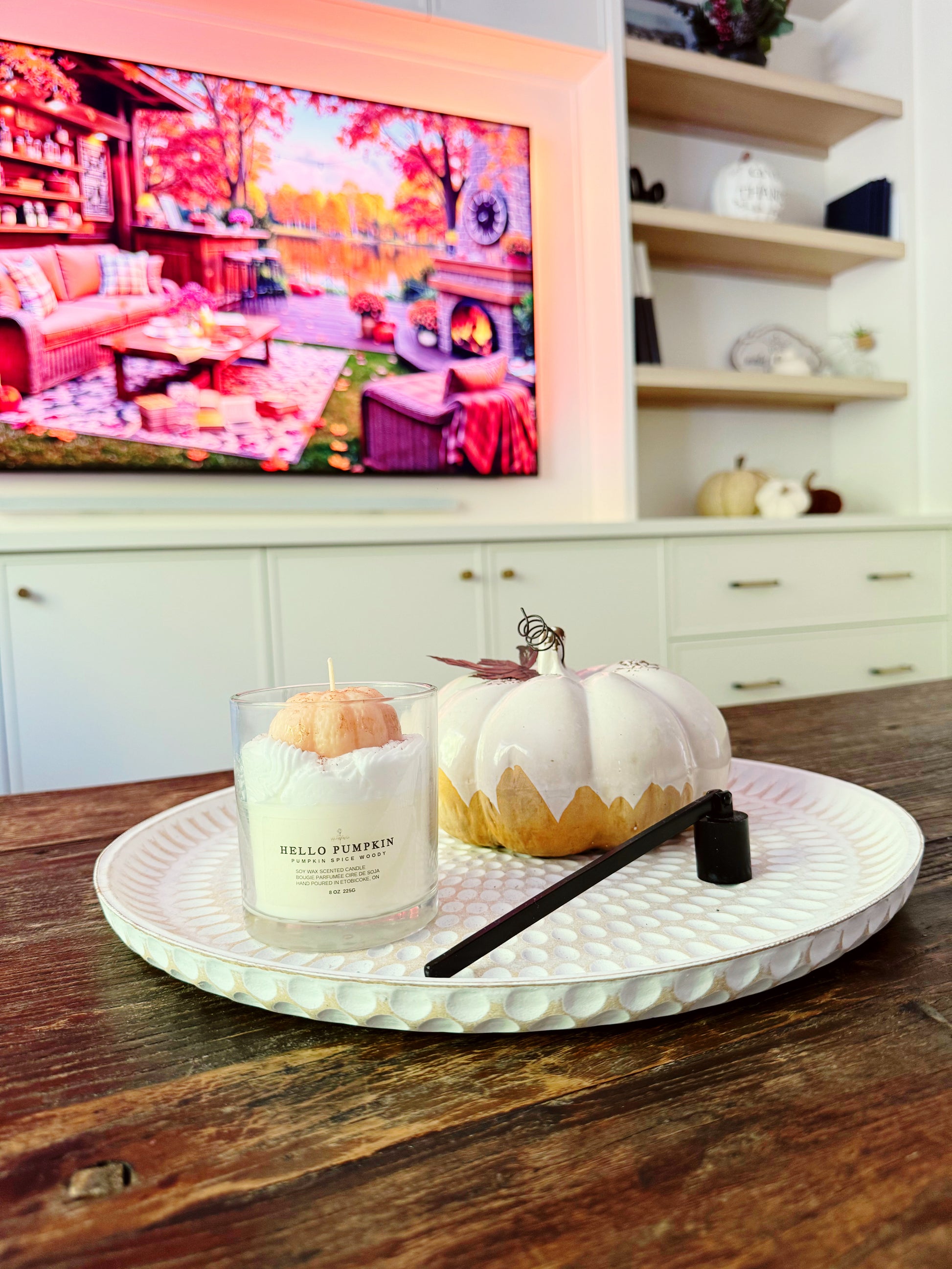 This adorable candle is perfect for those who are into everything pumpkin this fall. Enjoy the delightful notes of Apples, Fruits, Pumpkin, Clove, Nutmeg, Cinnamon & Vanilla!